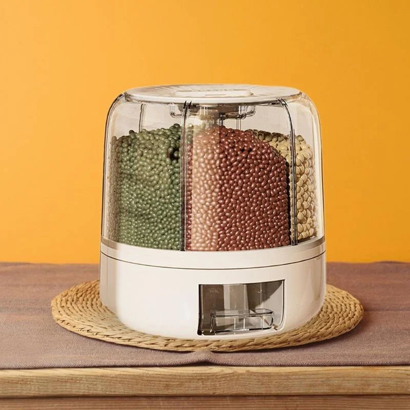 Obrotowy dyspenser do platkow ma nowoczesny i praktyczny design, wyposazony w 6 przezroczystych, szczelnych przegródek idealnych do przechowywania roznych rodzajow suchych produktow spozywczych. Niezaleznie czy chodzi o ryz, fasole, soczewice, makarony, platki czy orzechy – wszystko ma swoje miejsce i pozostaje swieze na dluzej.