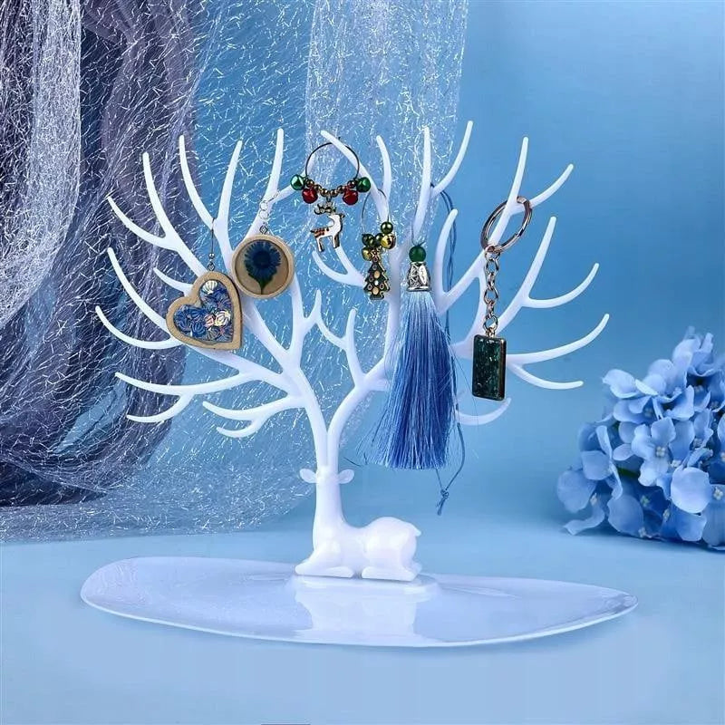 Zadbaj o swoje ulubione dodatki dzięki wyjątkowemu stojakowi na biżuterię w kształcie białej sarny. Ten elegancki i funkcjonalny organizer nie tylko chroni Twoje skarby, ale również pięknie je eksponuje, zamieniając każdy blat toaletki w małą galerię stylu.
