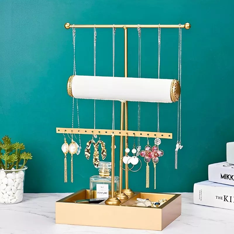Wieża na biżuterię posiada trzy ergonomiczne poziomy o różnej wysokości, uzupełnione o stabilną bazę z miękkim wykończeniem, które chroni przed zarysowaniami. To wyjątkowe rozwiązanie sprawia, że przechowywanie i organizowanie pierścionków, kolczyków, naszyjników i bransoletek staje się wygodne i intuicyjne. Możesz z łatwością segregować biżuterię według rozmiaru, koloru czy stylu.
