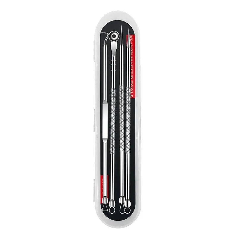 Zadbaj o swoja skore jak profesjonalista dzieki zestawowi narzedzi do usuwania wagrow i tradziku. Ten praktyczny zestaw sklada sie z 4 precyzyjnych narzedzi wykonanych z nierdzewnej stali chirurgicznej, ktore pomoga Ci skutecznie oczyscic pory i usunac niedoskonalosci bez uszkadzania naskorka.