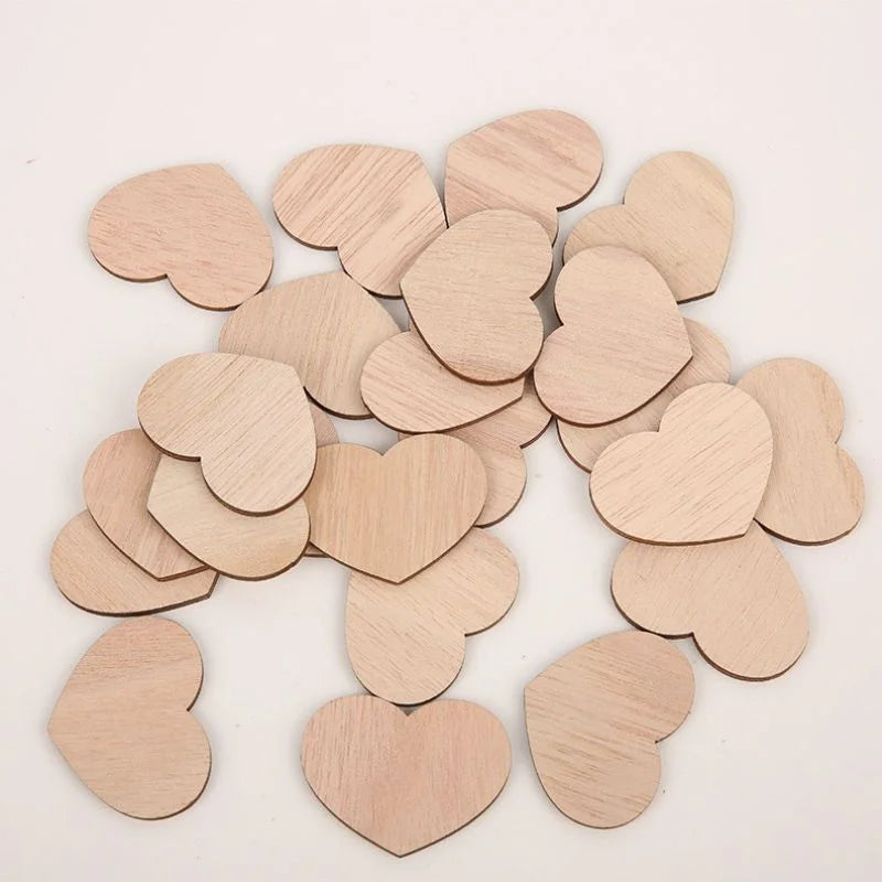 Zestaw zawiera przezroczysty stojak z drewniana rama w ksztalcie serca, pudelko na kolekcjonowanie z napisem oraz 80 drewnianych serduszek, na ktorych goscie moga zapisac swoje mysli. Kazde serduszko wrzuca sie przez gorna szczeline, tworzac stopniowo kolaż emocji, zyczen i wspomnien.