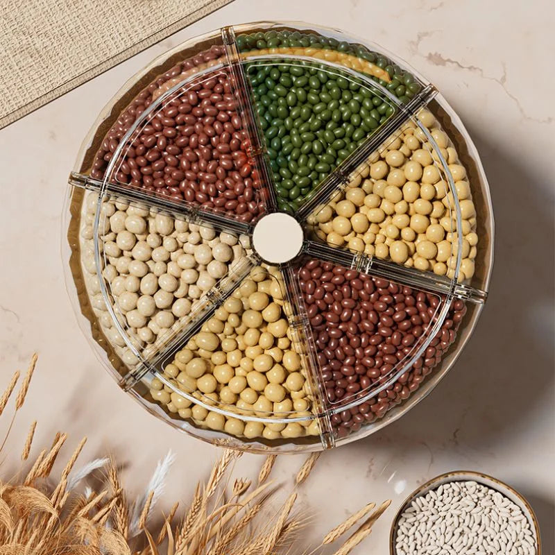Obrotowy dyspenser do platkow ma nowoczesny i praktyczny design, wyposazony w 6 przezroczystych, szczelnych przegródek idealnych do przechowywania roznych rodzajow suchych produktow spozywczych. Niezaleznie czy chodzi o ryz, fasole, soczewice, makarony, platki czy orzechy – wszystko ma swoje miejsce i pozostaje swieze na dluzej.