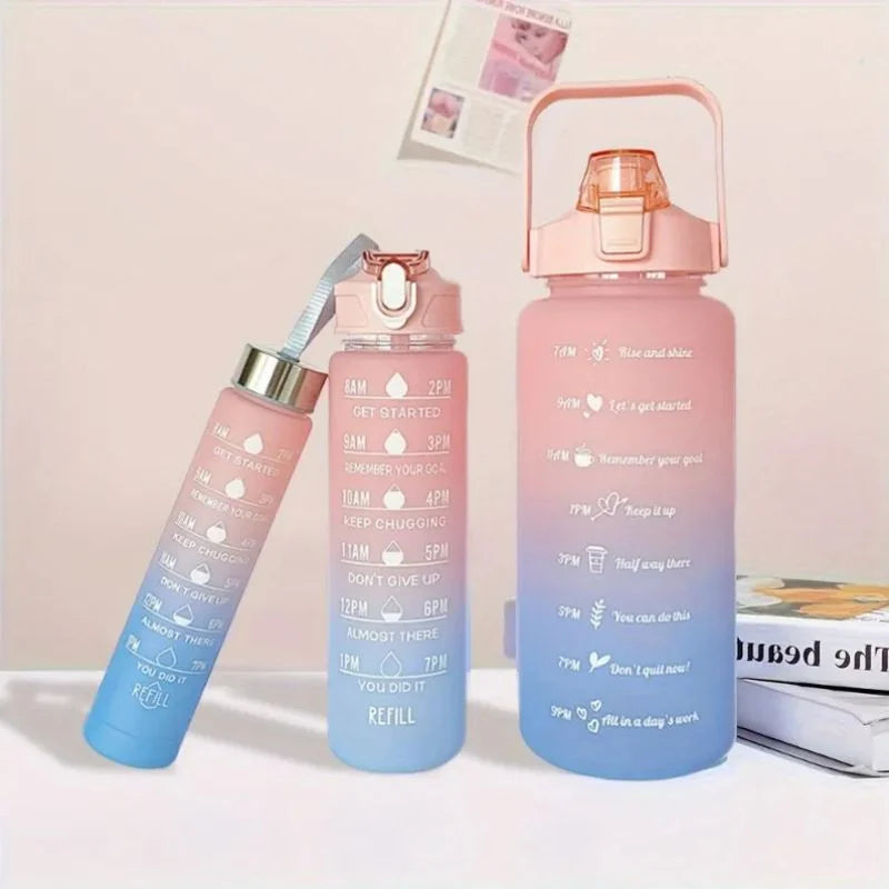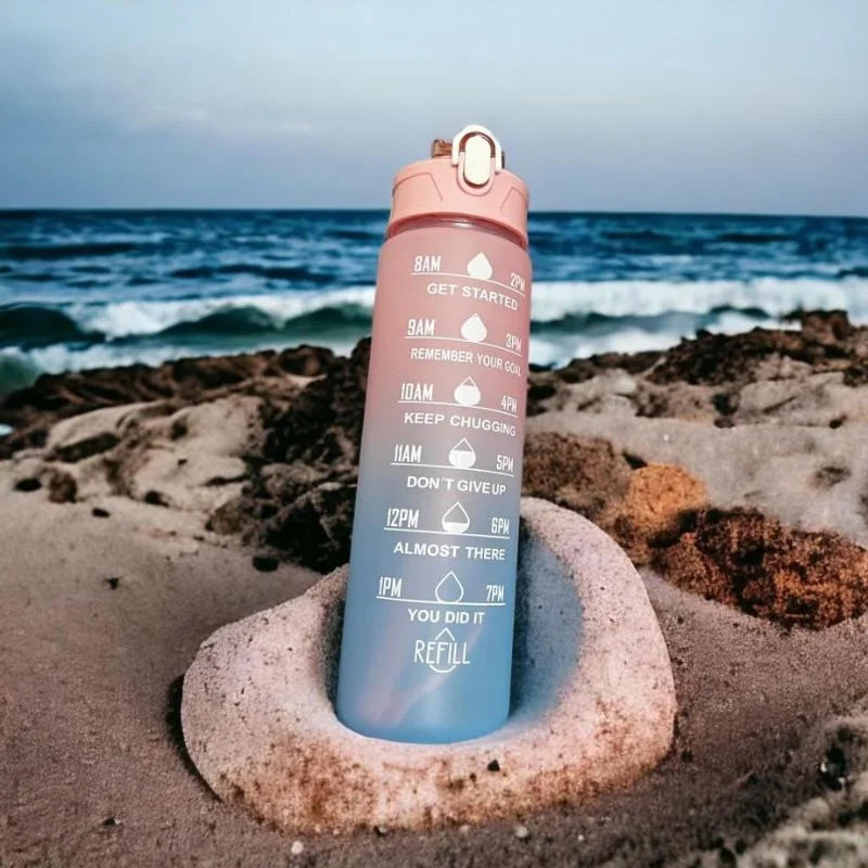 Zestaw 3 butelek na wode z motywacyjnymi napisami to idealny wybor dla osob, ktore chca prowadzic zdrowy, zorganizowany i pozytywny styl zycia. Kazda butelka ma nadrukowane komunikaty motywacyjne oznaczone godzinami, ktore przypominaja o regularnym nawodnieniu w ciagu calego dnia. Od „Rise and shine” po „You did it!” – kazdy napis dodaje energii i usmiechu.
