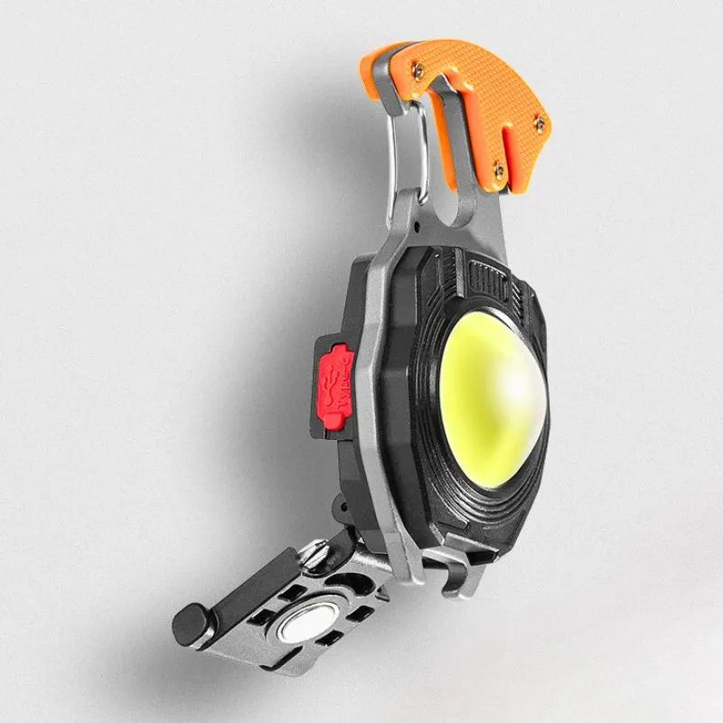 Ta latarka to nie tylko mocne źródło światła, ale również wielofunkcyjne narzędzie. Zawiera otwieracz do butelek, zapalniczkę, nożyk, gwizdek ratunkowy, magnes, śrubokręt oraz nóż, co czyni ją idealną do wędrówek, biwakowania, podróży nocnych i samoobrony. Zasilana akumulatorem 500 mAh, ładuje się szybko przez kabel USB Type C i oferuje imponującą autonomię.