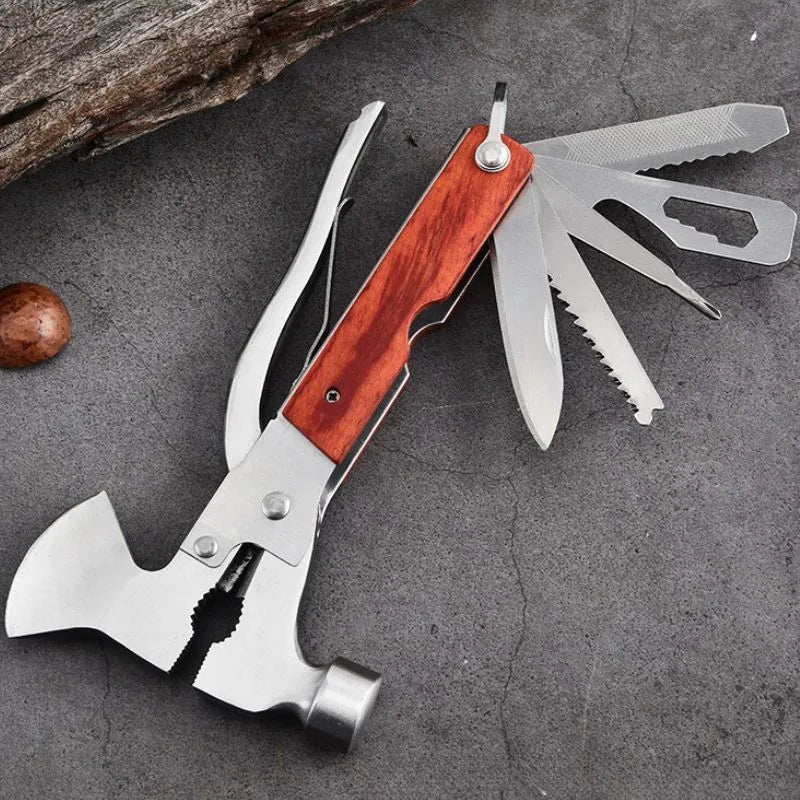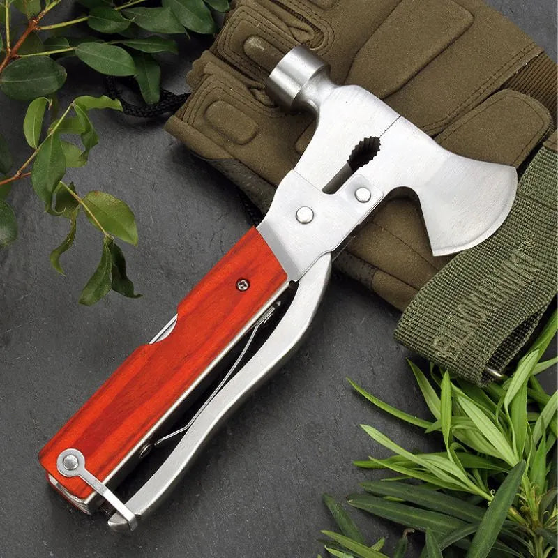 Wielofunkcyjne narzedzie Outdoor zostalo stworzone, aby sprostac wszystkim twoim potrzebom na swiezym powietrzu – niezaleznie czy chodzi o biwakowanie, lowienie ryb, wedrowki czy inne aktywnosci survivalowe. Wykonane z trwalej stali nierdzewnej, to narzedzie 16-w-1 laczy funkcjonalnosc mlotka, toporka, noza, kombinerkow, wkretaka, otwieracza do butelek i wielu innych w jednym kompaktowym, latwym do przenoszenia designie.