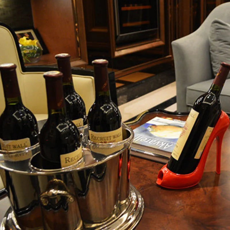 Projekt, ktory przyciaga wzrok od pierwszego spojrzenia. Stojak na wino Diva Heel zostal zaprojektowany w formie buta na wysokim obcasie i jest dostepny w dwoch spektakularnych kolorach: czerwonym i szampanskim. Nie tylko utrzymuje butelke wina o pojemnosci do 0,7 litra, ale rowniez dodaje elegancji i kobiecego charakteru do wystroju. Wykonany z trwalej zywicy i wykonczeniami z dbałoscia o szczegoly, ten stojak jest idealny, aby stac sie centralnym punktem stolu lub witryny.