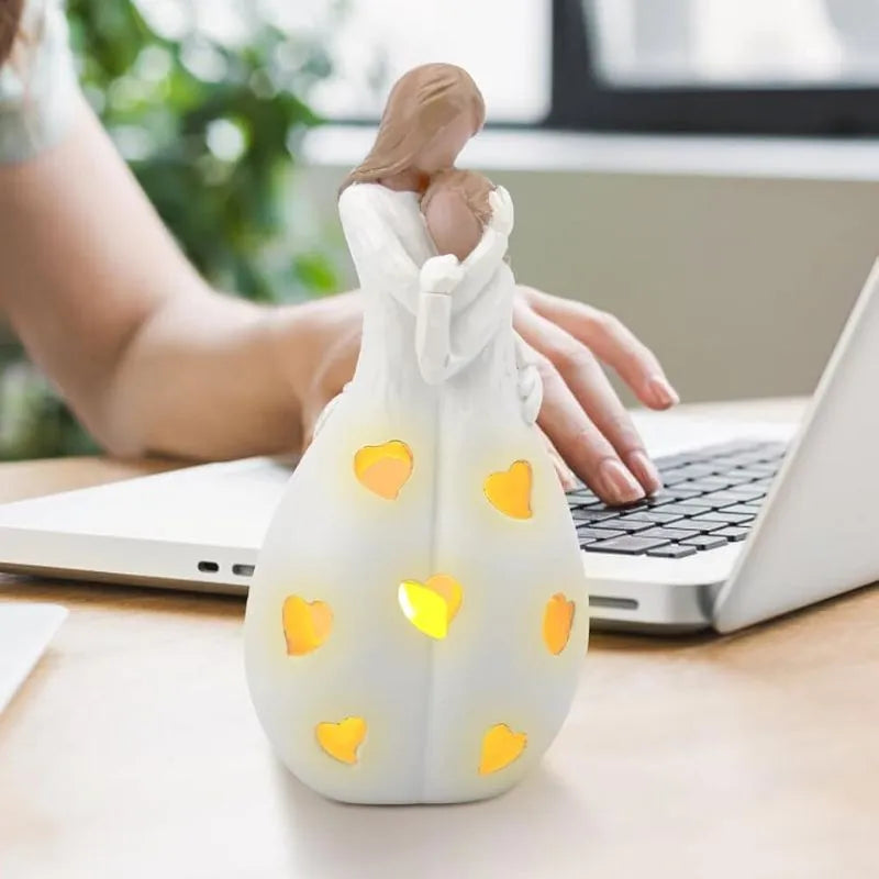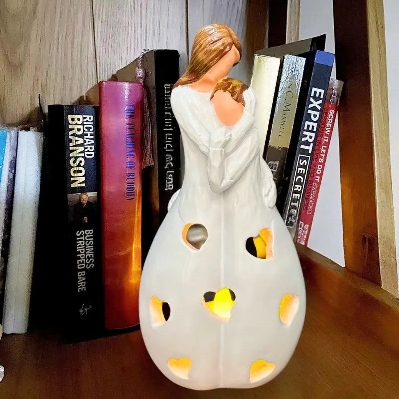 Wykonany z wysokiej jakości żywicy, świecznik przedstawia szczegółową rzeźbę matki trzymającej córkę w ramionach. Ma wysokość 20 cm i średnicę 10 cm, dzięki czemu jest wystarczająco kompaktowy, aby można go było postawić w dowolnym miejscu w domu, a jednocześnie wystarczająco efektowny, by przyciągać uwagę. W ciągu dnia stanowi elegancki element dekoracyjny, a wieczorem światło świecy migoczące przez wycięte serduszka tworzy intymną i relaksującą atmosferę.