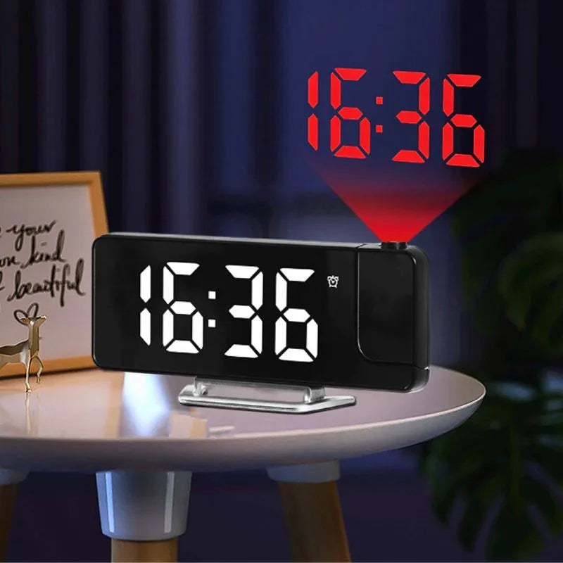 Urządzenie wyposażone jest w czytelny, jasny ekran LED, który zapewnia doskonałą widoczność nawet w nocy. Funkcja projekcji jest regulowana, co pozwala dopasować ją do indywidualnych preferencji użytkownika. Jego nowoczesny design i kompaktowa forma sprawiają, że idealnie wpisuje się w każde wnętrze sypialni.