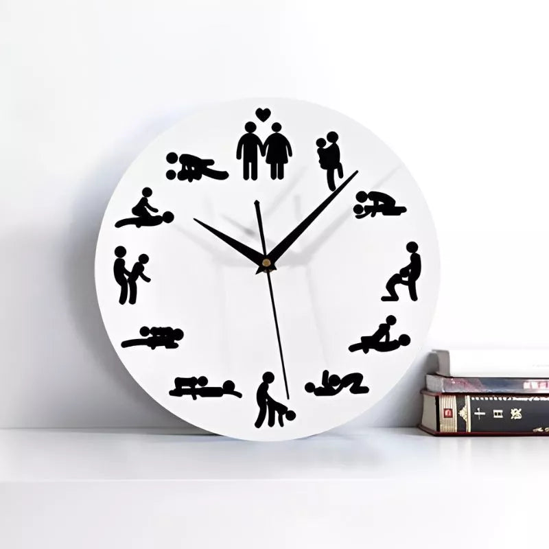 Ten oryginalny zegar łączy klasyczny styl z nowoczesnym designem. W miejscu każdej godziny znajdziesz sugestywną pozycję z Kamasutry, która może stać się Twoją inspiracją do niezapomnianych chwil we dwoje. Neutralna kolorystyka i wykonanie z lekkiego plastiku i akrylu sprawiają, że zegar doskonale wpasuje się w każde wnętrze – od sypialni po salon.